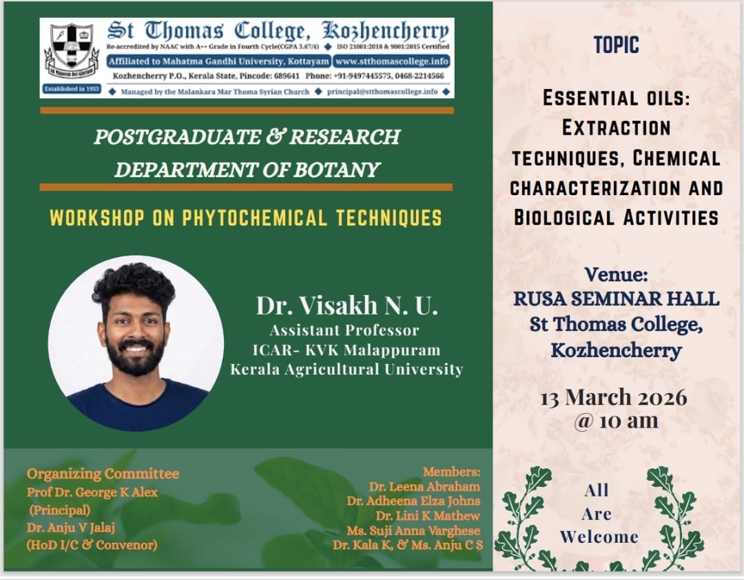Postgraduate and Research department of botany organizes a workshop on phytochemical techniques....