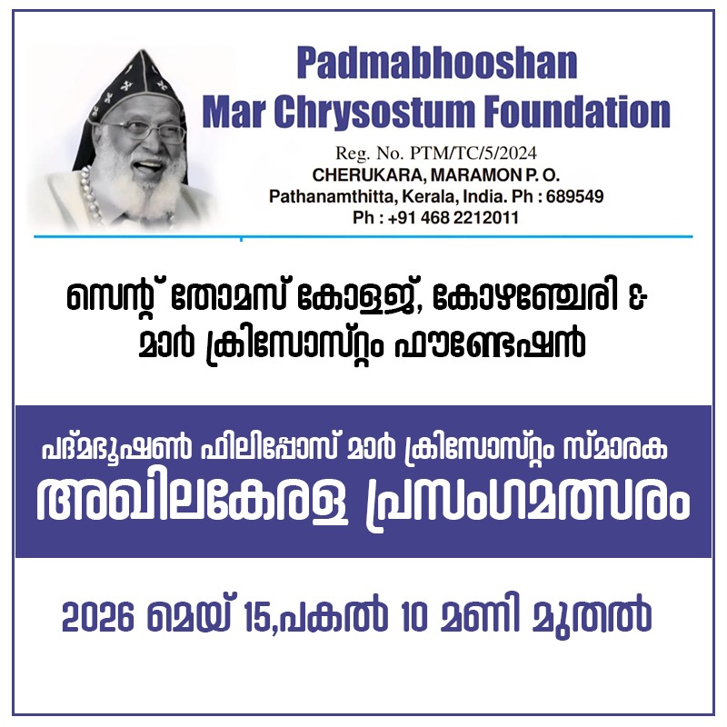 St.Thomas College, Kozhencherry was established in 1953, under the untiring visionary initiative of Very Rev. K.T. Thomas Kaseesa, ably supported by the then Metropolitan Dr. Juhanon Mar Thoma, the community in Kozhencherry, the parish here and of course Marthomites from different parts of Kerala. Set atop a hill, with an expansive view of the south western valleys, in a serene village, with the green panoramic Sahyadri in the east, close to the cool lush river Pamba, near the famous Maramon sandbank, beneath the green shades of Badam trees, the college provides a sublime and conducive natural ambience for attaining academic eminence.